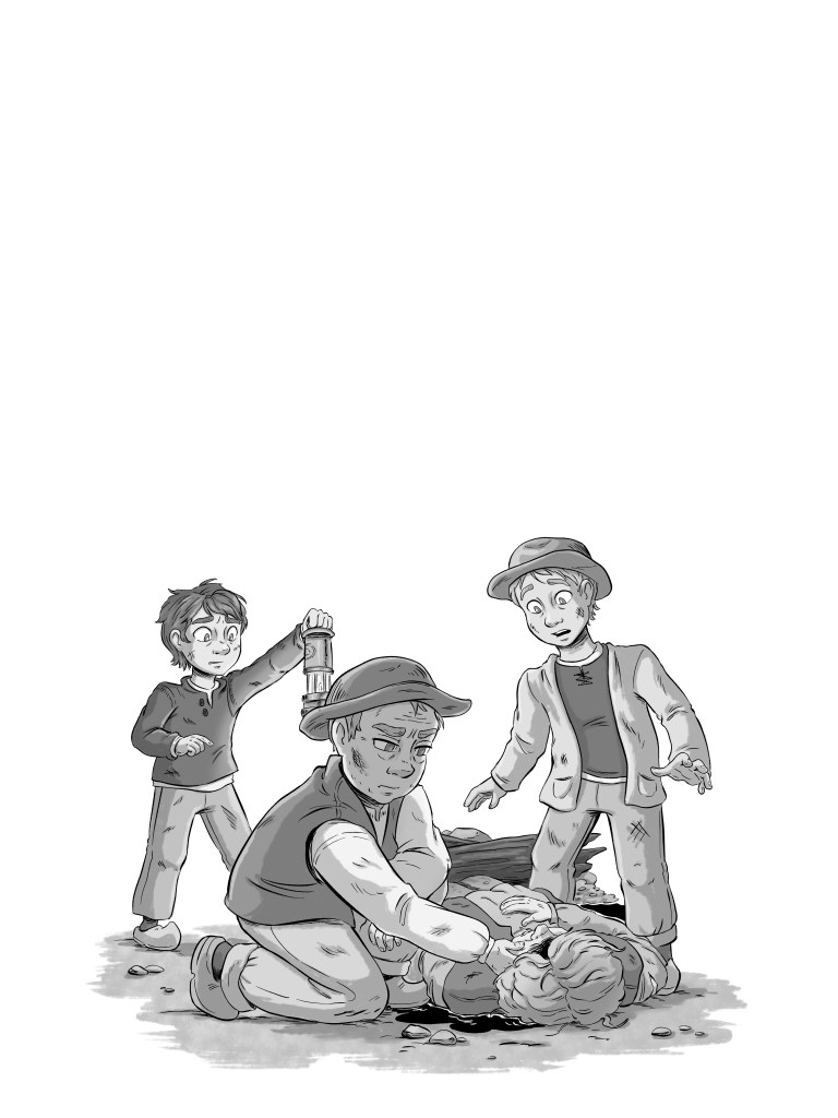 Plötsligt upptäcker Nils ett hål i gruvväggen. Där inne ligger någon, en död man! Men vem är han?