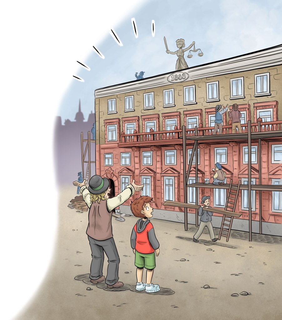 En barnbok om en tidsresa och domstolens utveckling genom historien. Blandar historia, fakta och skönlitteratur. På uppdrag av Göteborgs tingsrätt till domstolens 400-årsjubileum. Delades ut till barn och unga samt andra intresserade.