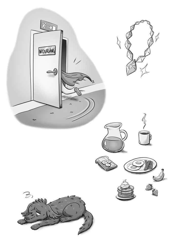 I uppdraget tecknade jag omslag samt bilder till inlagan, helsidesbilder i färg och mindre i svartvitt. Gjorde även sättningen av omslagen och inlagorna.